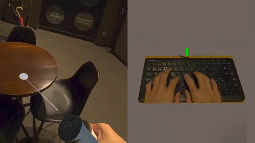 Tačiau bandymas modeliuoti kiekvieną įmanomą „Bluetooth“ klaviatūrą būtų pralaimėtas mūšis, o 71 „Quest's Horizon OS“ versijoje „Meta“ buvo pridėta galimybė sekti bet kurią klaviatūrą ir ją iškirpti per praėjimą, o ne pateikti jos modelį.