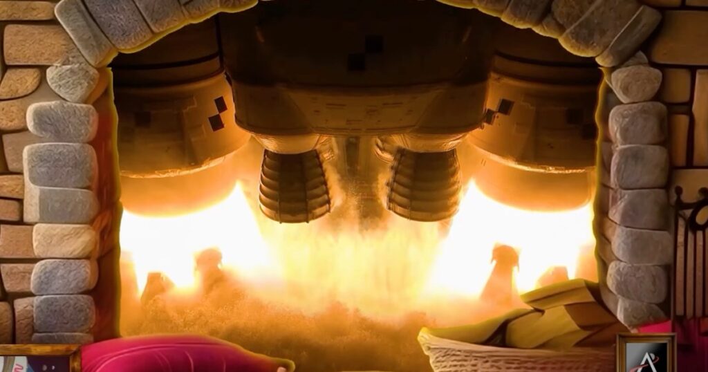 Jei tai nesuskambina jūsų varpais, kaip apie kažką kitokio – pavyzdžiui, virtualų židinį su keturiais riaumojančiais raketų varikliais.